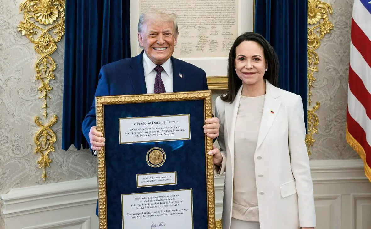 В октябре 2025 года престижную награду за продвижение демократии в Венесуэле получила лидер оппозиции Мария Корина Мачадо. Дональд Трамп также номинировался, но не победил. 6 января Мачадо, назвав премию "наградой венесуэльского народа", с энтузиазмом предложила разделить ее с Трампом. Уже 16 января состоялась символическая передача медали в Белом доме, где Трамп восхищенно отозвался о Мачадо как о "замечательной женщине с трудной судьбой".