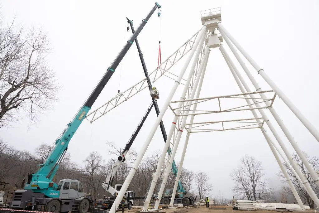 В настоящий момент основной акцент рабочих находится на монтаже первого уровня прочных опорных элементов. Всего карусель будет опираться на шесть крупных несущих конструкций, которые станут крепким основанием для будущего колеса обозрения. Современные технологии и опытные специалисты высокого уровня обеспечивают качество и безопасность новой достопримечательности.
